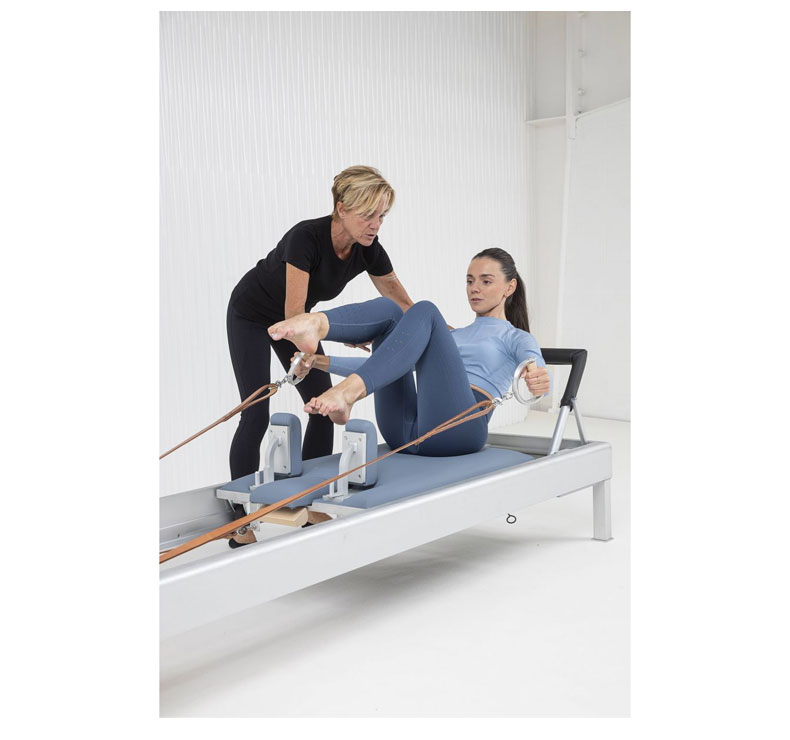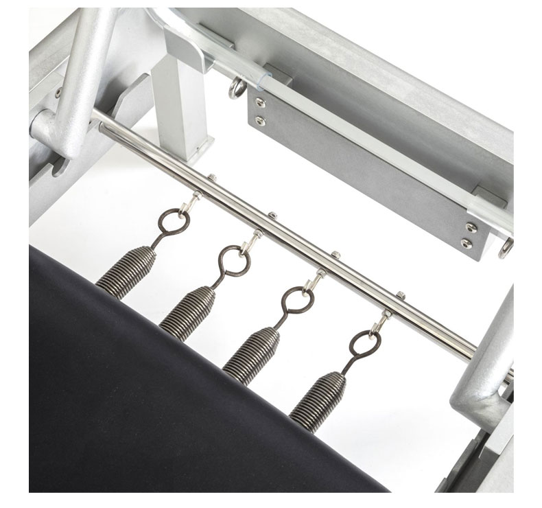 Cada aspecto de este equipo ha sido meticulosamente diseñado para respetar la autenticidad del método Pilates clásico. Desde las correas de cuero natural hasta la pica de aluminio y las asas de madera, las características principales de este reformer combinan la artesanía tradicional con la calidad y durabilidad modernas.